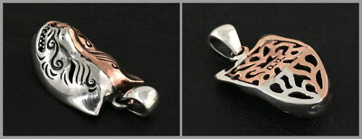 半面はシルバー、半面は銅で作られた狐の面をモチーフにしたシルバーペンダントです。
